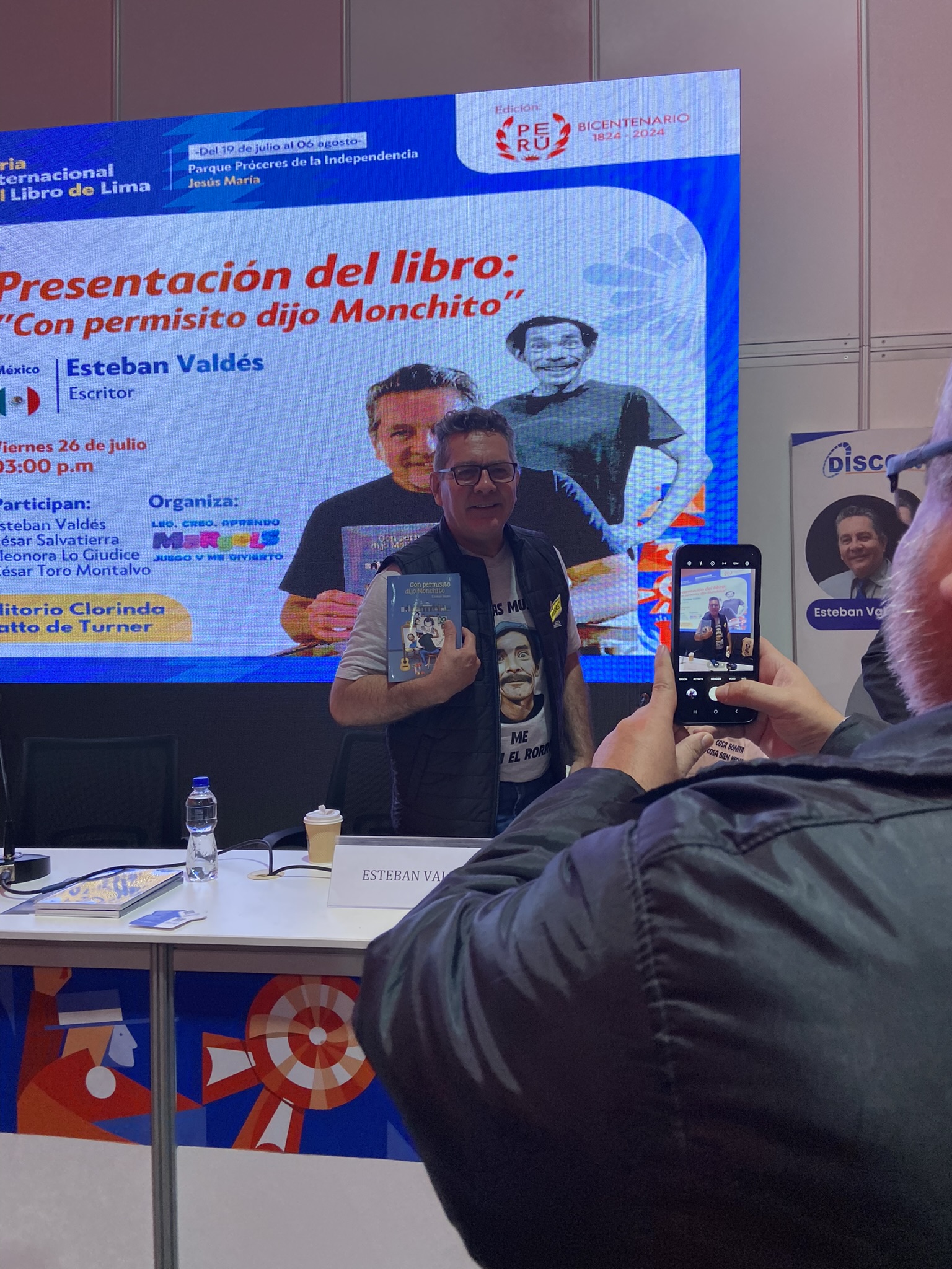 María Antonieta de Las Nieves, la Chilindrina, anuncia el lanzamiento oficial del libro Con Permisito Dijo Monchito de Esteban Valdes en la 1° Feria del Libro Internacional Guayaquil Ecuador